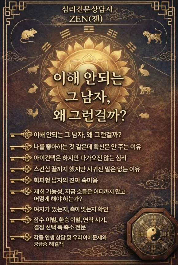 남자 연애심리, 속마음 전문 상담사 젠(ZEN) 입니다.