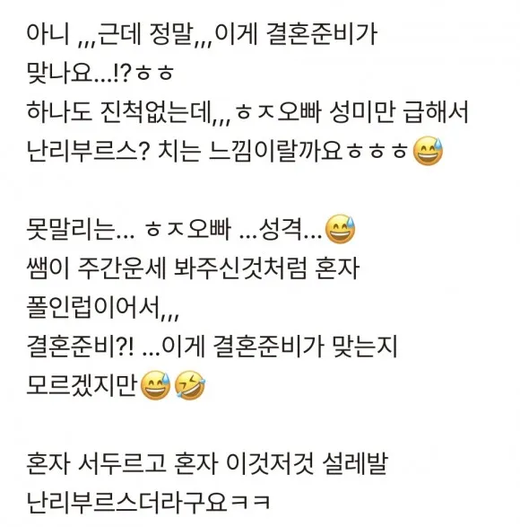 나혼자 맞추는거같고 감정표현을 잘 하지않아요