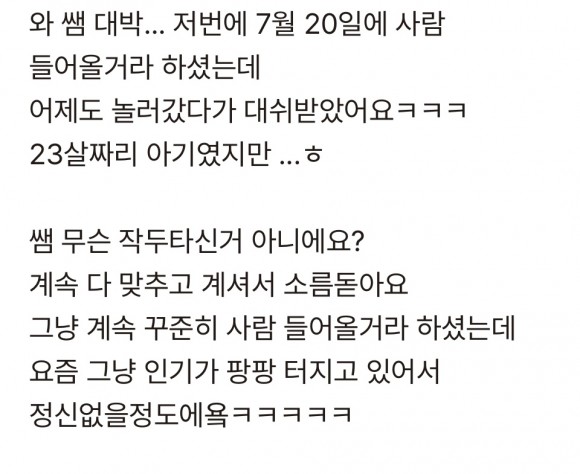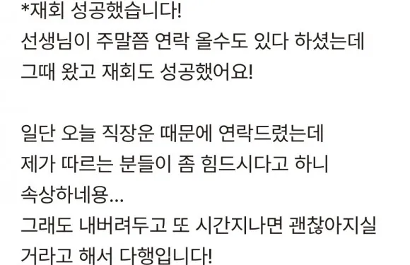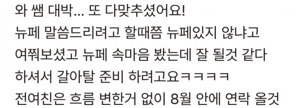 겹지인에게 입장을 전달해둔 상태에요