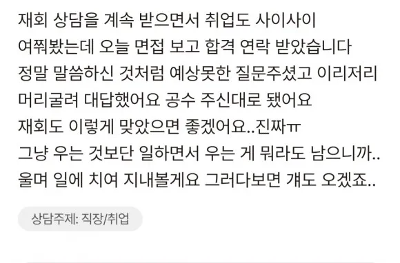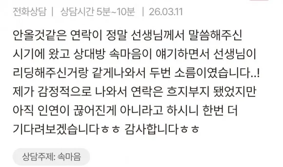 #재상담이신 분들께서는 앞전 상담내용을 일부분이라도 말씀해주셔야 심도깊은 상담이 가능해요 !! 재상담이라고만 말씀해주시면, 첫상담때와 비슷한 말들만 되풀이 될 수있어요 😞