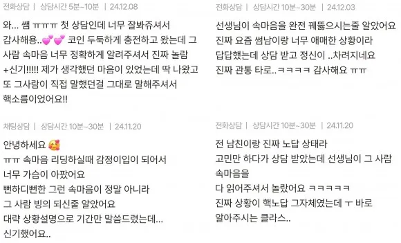 속마음에 대해서는 무서울 정도로 상세히 알려드릴 수 있으니