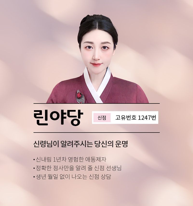 신점에 신규상담사 린야당(1247번) 선생님이 새롭게 등록하였습니다.