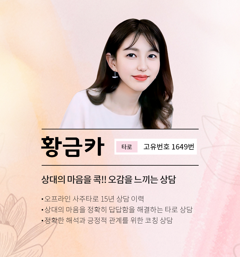 황금카 선생님은 원하는 부분을 정확히 짚어주는 타로 선생님 입니다.