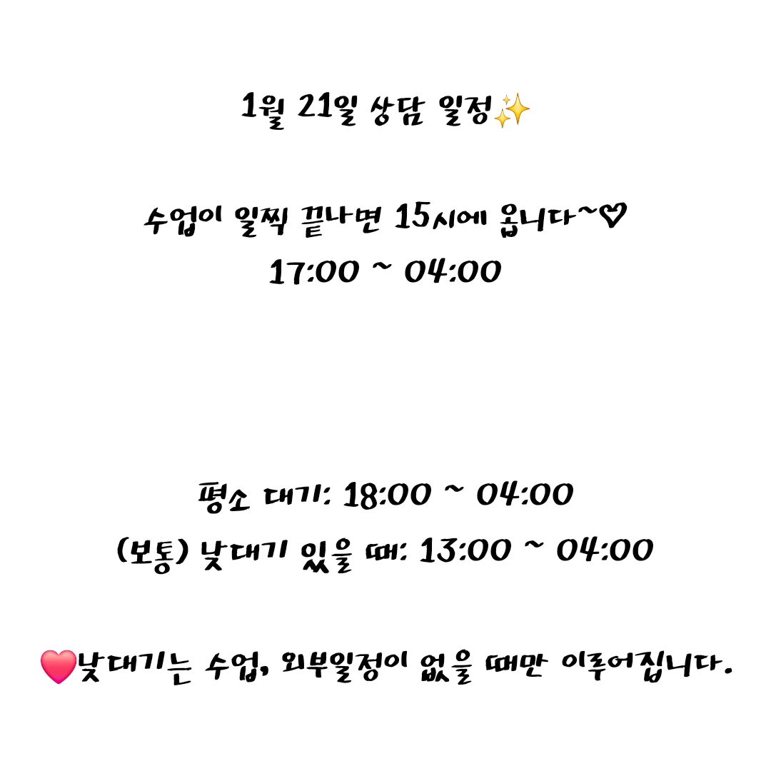 ㄴ 오프라인 상담 & 취침 시간 외로는 시간 조율 가능