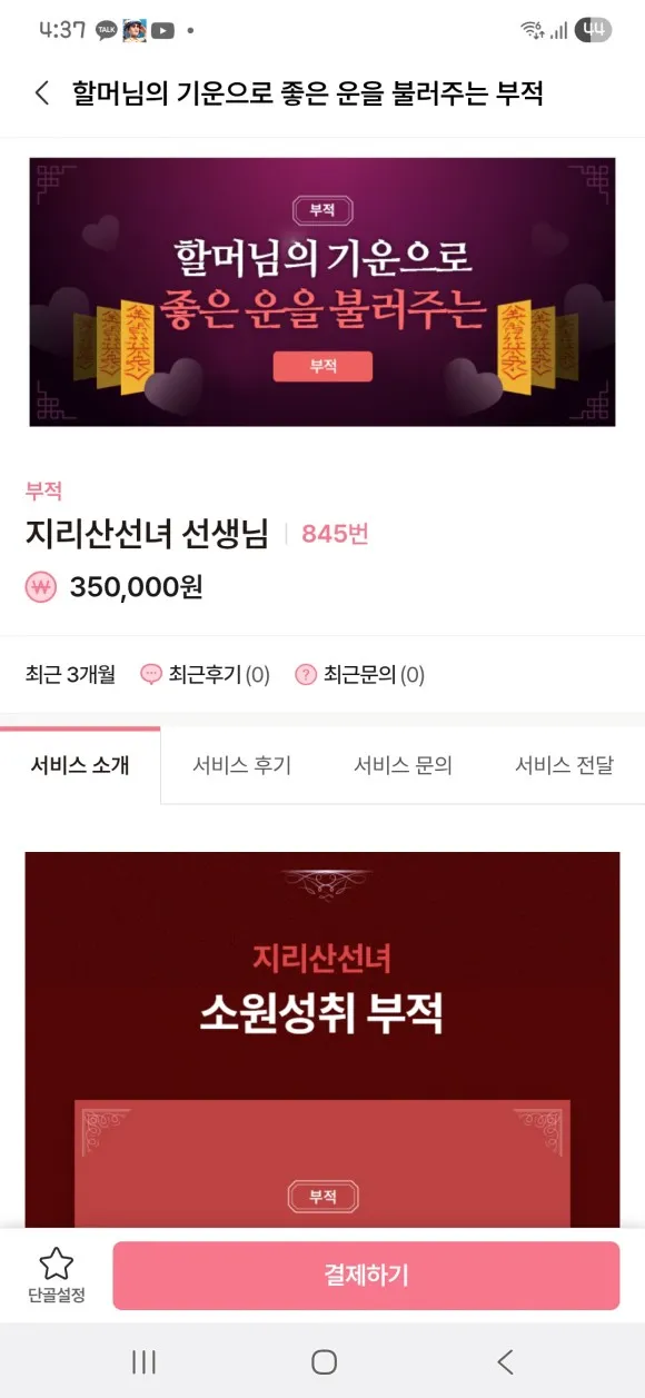 부가서비스로 초기도 부적을 추가했습니다.