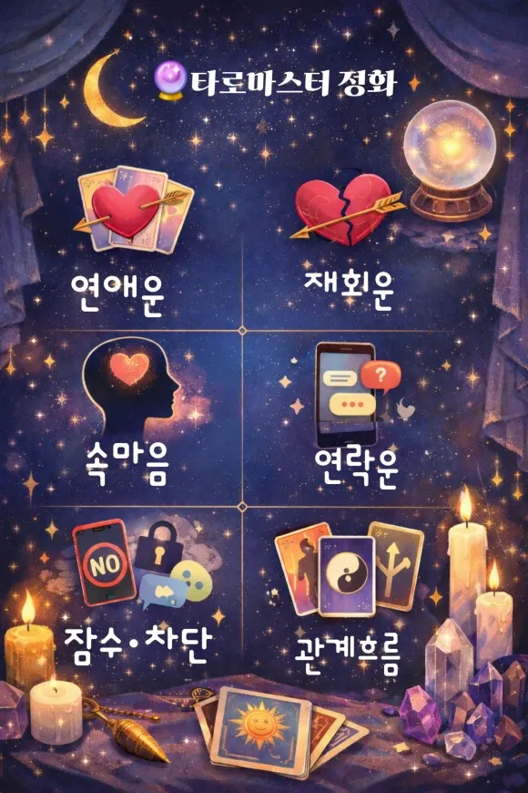 🌙 연애 · 재회 · 속마음 · 연락운 · 잠수·차단 전문 타로 | 정화
