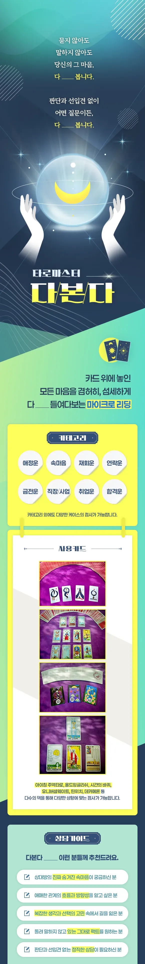 안녕하세요, 타로 마스터 ‘다본다’ 입니다.