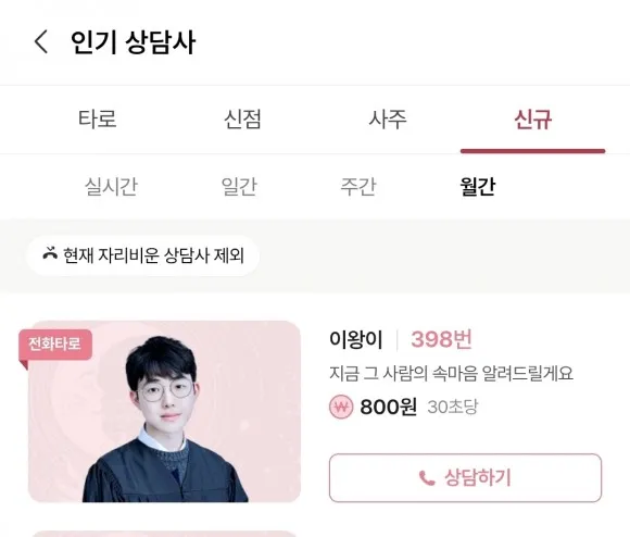 신규 파트 월간 인기 상담사