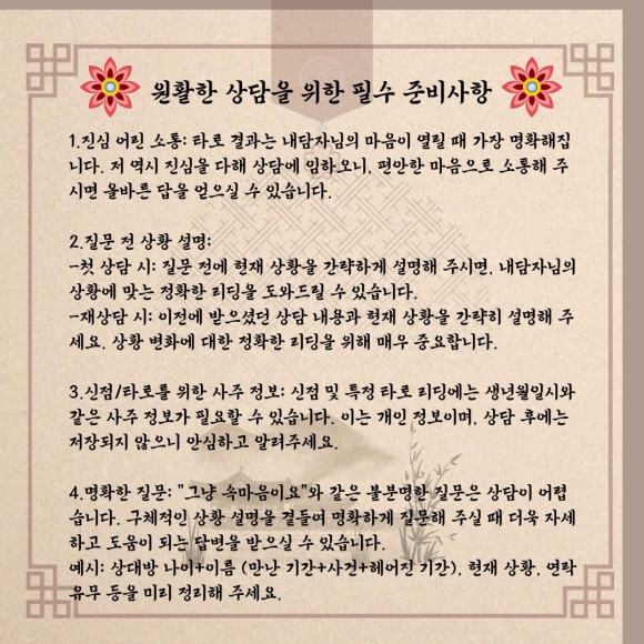 · 편안하게 마음을 열어 진정한 치유를 드릴 타로 마스터