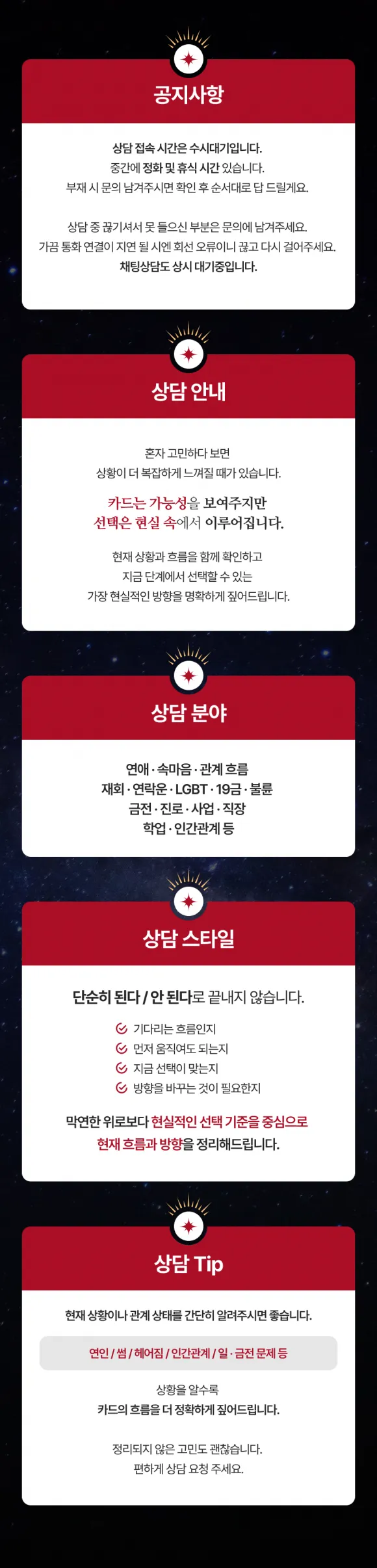 · 수많은 상담 경험을 녹아내 리딩 하는 타로 선생님