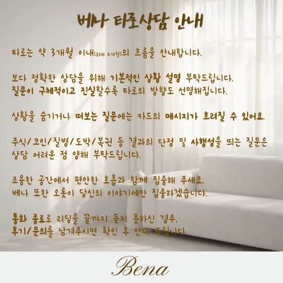 내담자님이 알려주신 상황을 바탕으로 상대방과 내담자의 마음·흐름·방향을 리딩합니다.