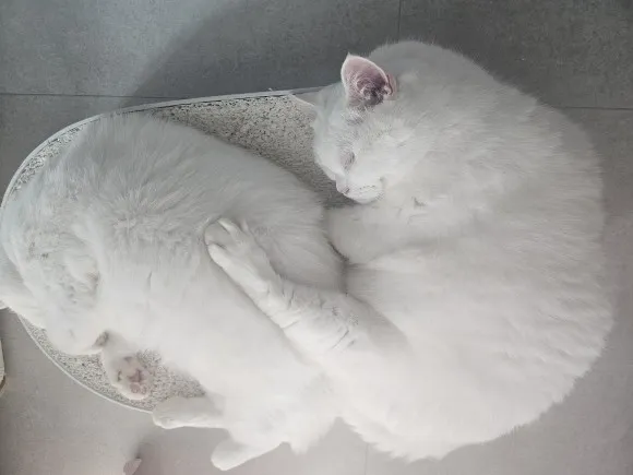몸이 불편한 흰고양이 2마리와 동거중이에요