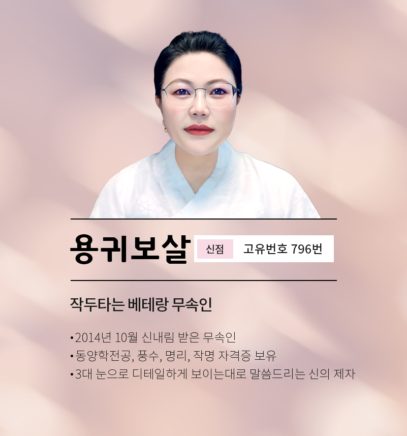 신점에 신규상담사 용귀보살(796번) 선생님이 새롭게 등록하였습니다.