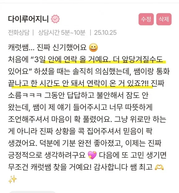 수많은 상담 후기 속에서도 인정받고 있는